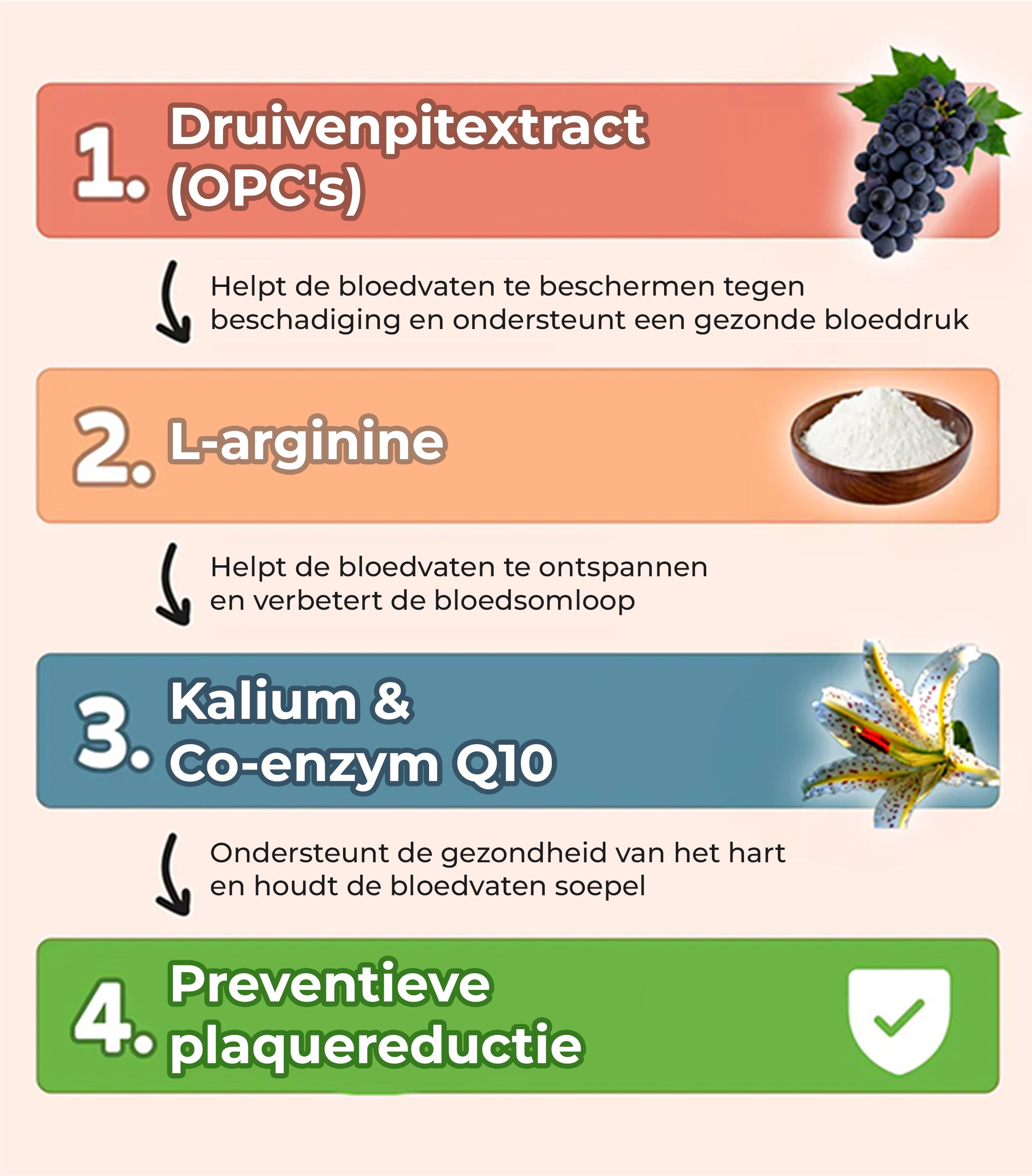 Het opmerkelijke aan deze natuurlijke bestanddelen is dat ze niet slechts één aspect van de gezondheid van de slagaders aanpakken, maar samenwerken om het hele cardiovasculaire systeem te ondersteunen.