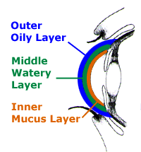 De traanfilm die onze ogen beschermt, bestaat uit drie lagen: