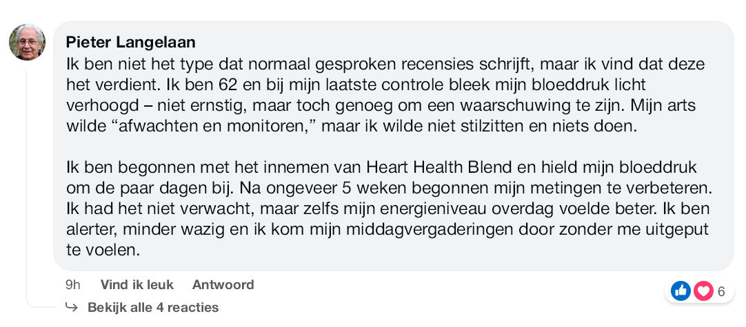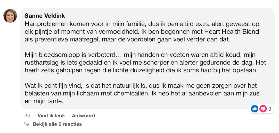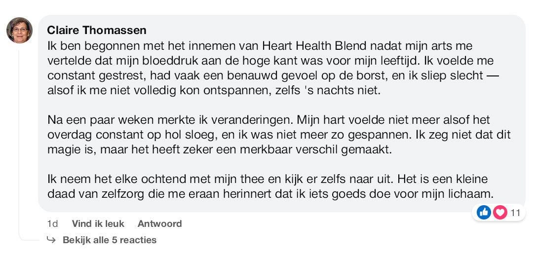 “Heart Health Blend is niet zomaar een product. Het is het gevoel eindelijk begrepen te worden. We waren allemaal zo uitgeput – maar nu hebben we weer energie en moed.”