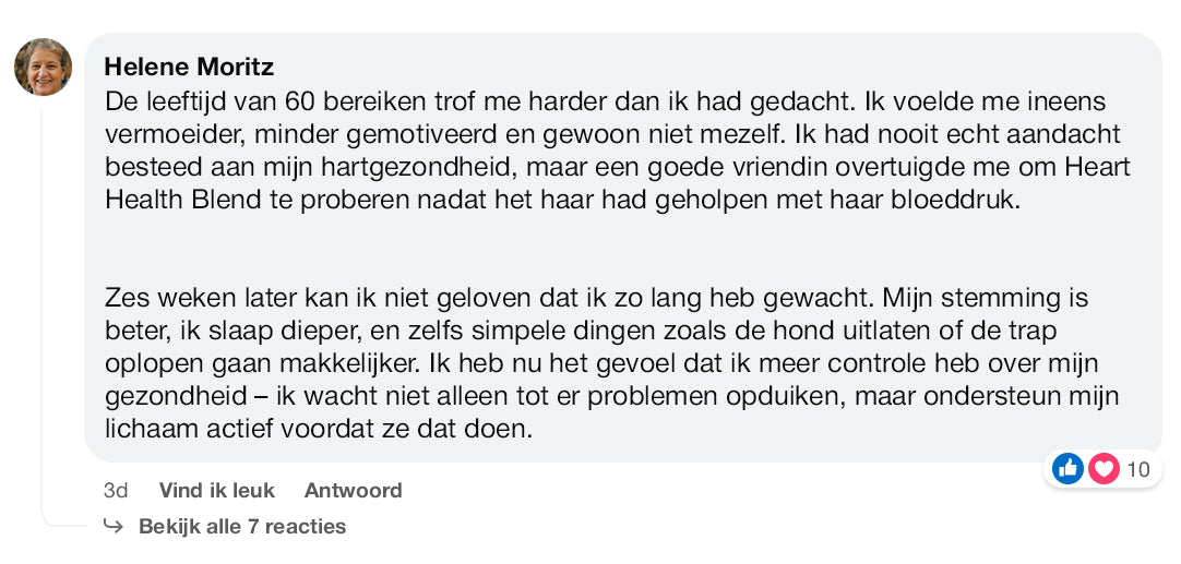 Heart Health blend heeft mij niet alleen mijn hart teruggegeven, maar ook een stukje levensvreugde.