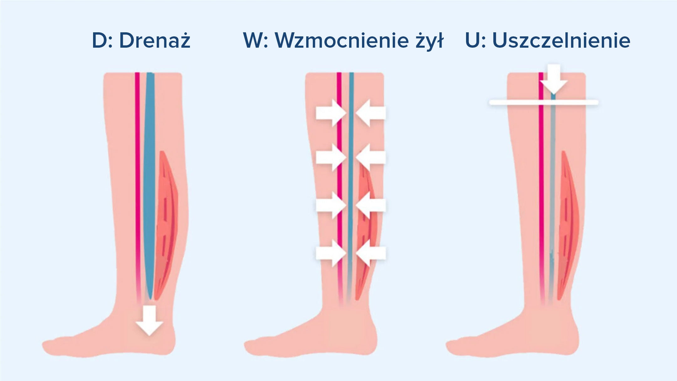 Metoda DWU oznacza drenaż, wzmocnienie i uszczelnienie żył.