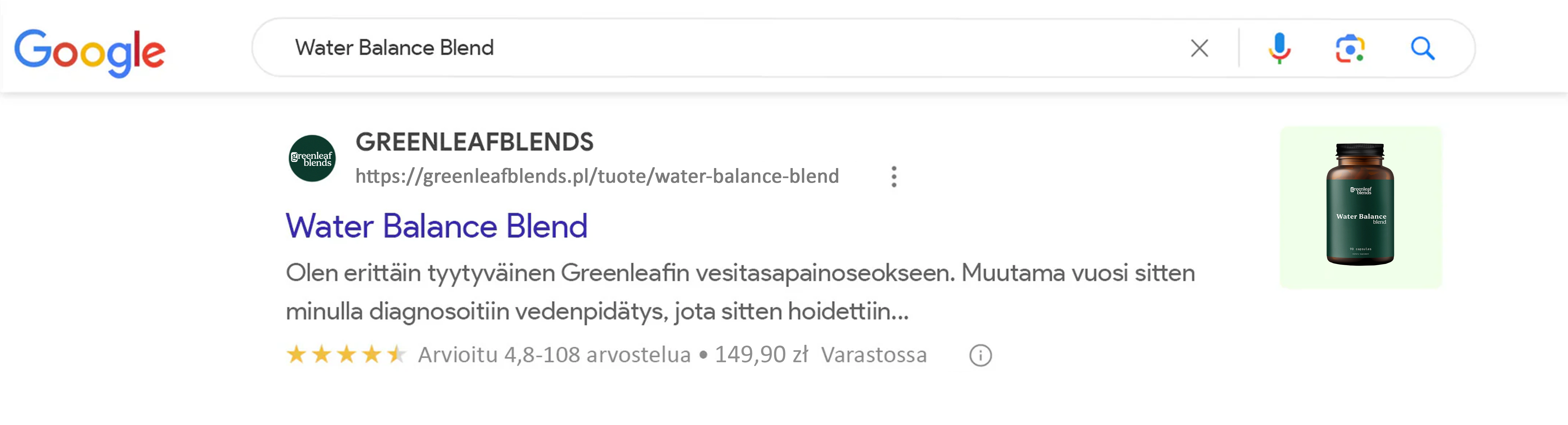 Produkt, na który natrafiłam, nazywał się Water Balance Blend z firmy „Greenleaf Blends”.