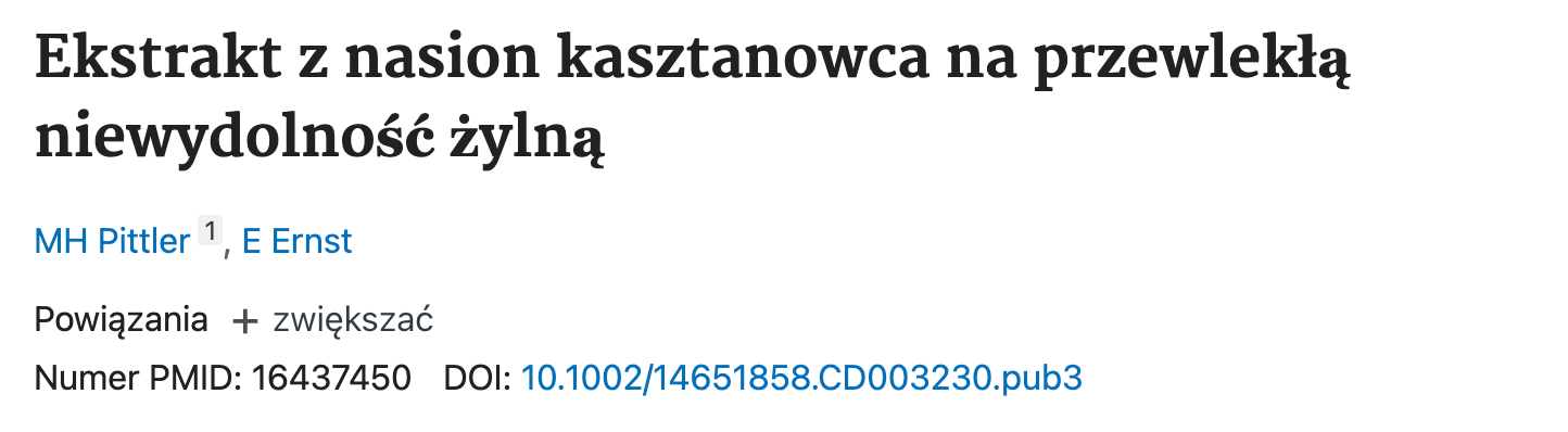 Tutaj 6 z 7 osób zgłosiło, że przyjmowanie ekstraktu z kasztanowca znacząco zmniejszyło ból i obrzęk nóg.