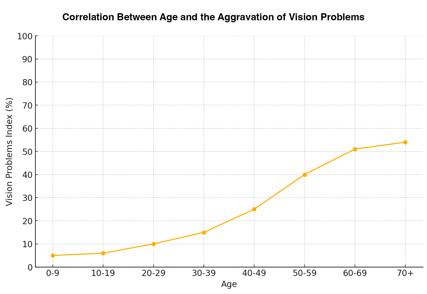 This graph illustrates what we've long believed - that as we age, our vision inevitably deteriorates.