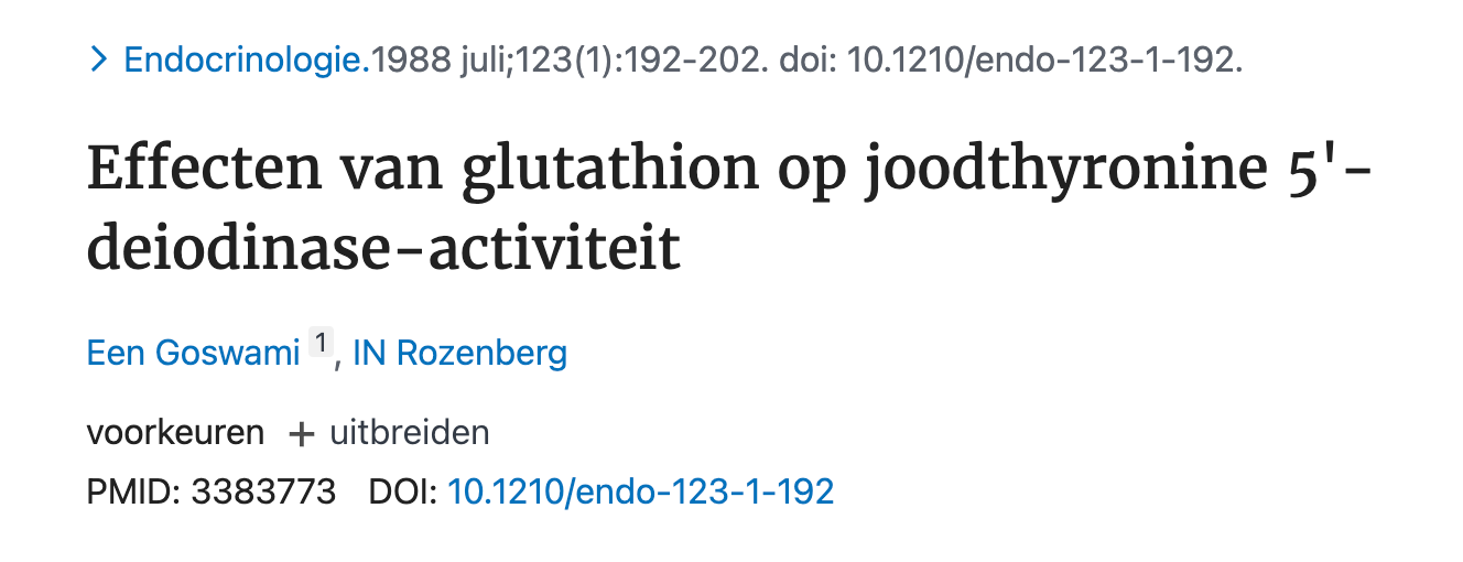 Effects of glutathione on iodothyronine 5'-deiodinase activity: https://pubmed.ncbi.nlm.nih.gov/3383773/